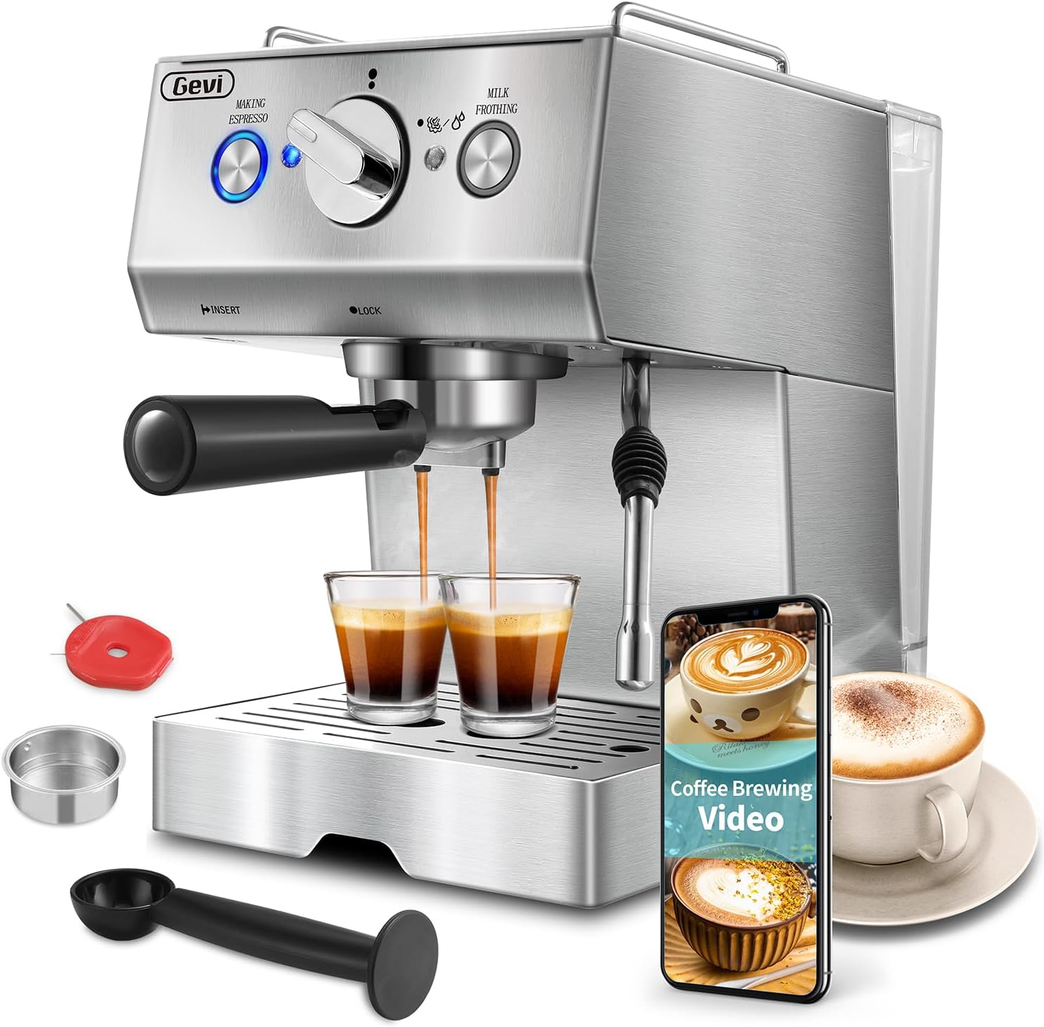 Espresso Machines 15 Bar with Adjustable Milk Frother Wand Expresso Coffee Machine for Cappuccino, Latte, Mocha, Machiato, 1.5L Removable Water Tank, Double Temperature Control System, 1100W, Black
